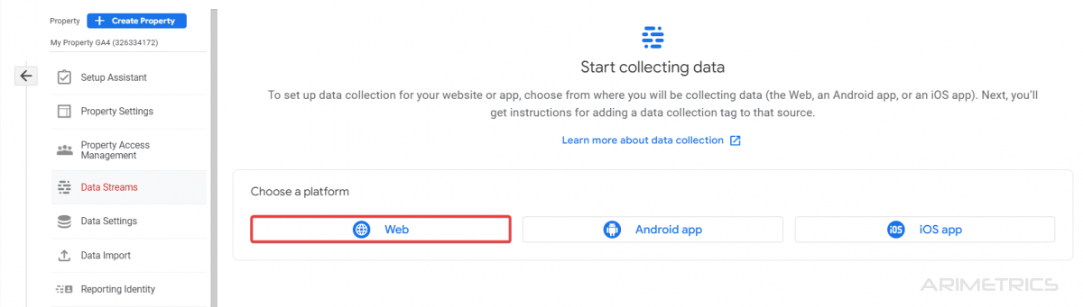 Data flows are information that is generated from the client and goes to Google Analytics. A data stream must be created for each type of platform (web, Android app or iOS App)