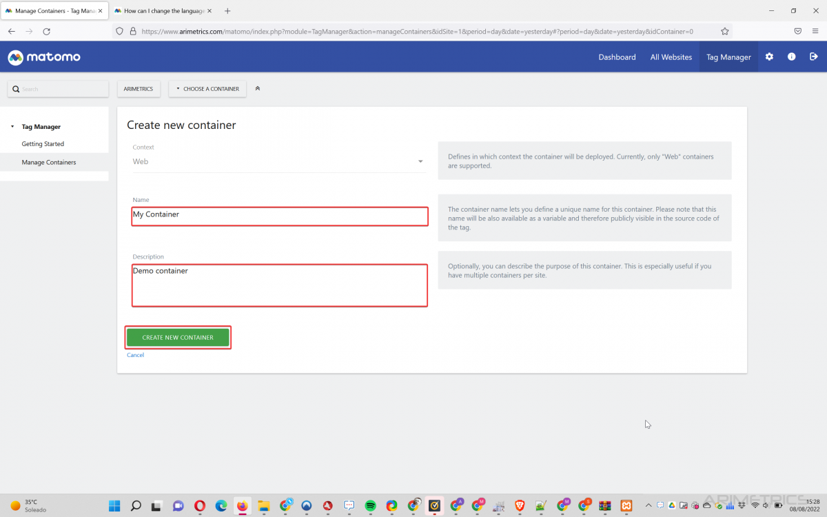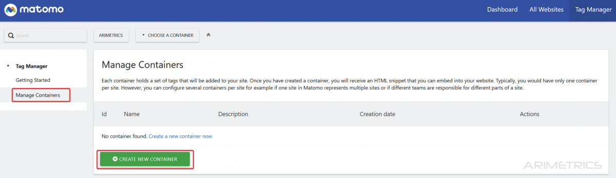 Matomo Tag Manager is Matomo’s tag manager. It is equivalent to Google’s Google Tag Manager. It allows you to create containers on a website within which you can add other tools, or measure certain interactions that happen on the web.